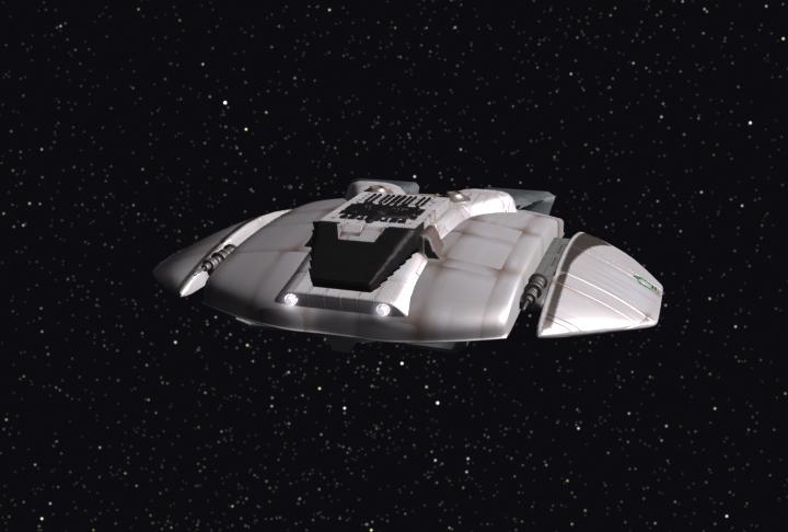 Colonial Viper. Modeled from a Monogram kit. Flies great in the vacuum of space but, much like a bumble bee, shouldn't be able to fly in an atmosphere (Watch Galactica 1980 for a second opinion, though). Many thanks to J. Dykstra for inspiration on the previous models. |